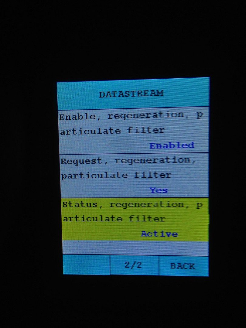 Also, if there is a statistic reported on Exhaust Back pressure, would we expect that this should degrease while the reg is taking place? Do we know what the Back pressure reading should be to indicate good DPF status?